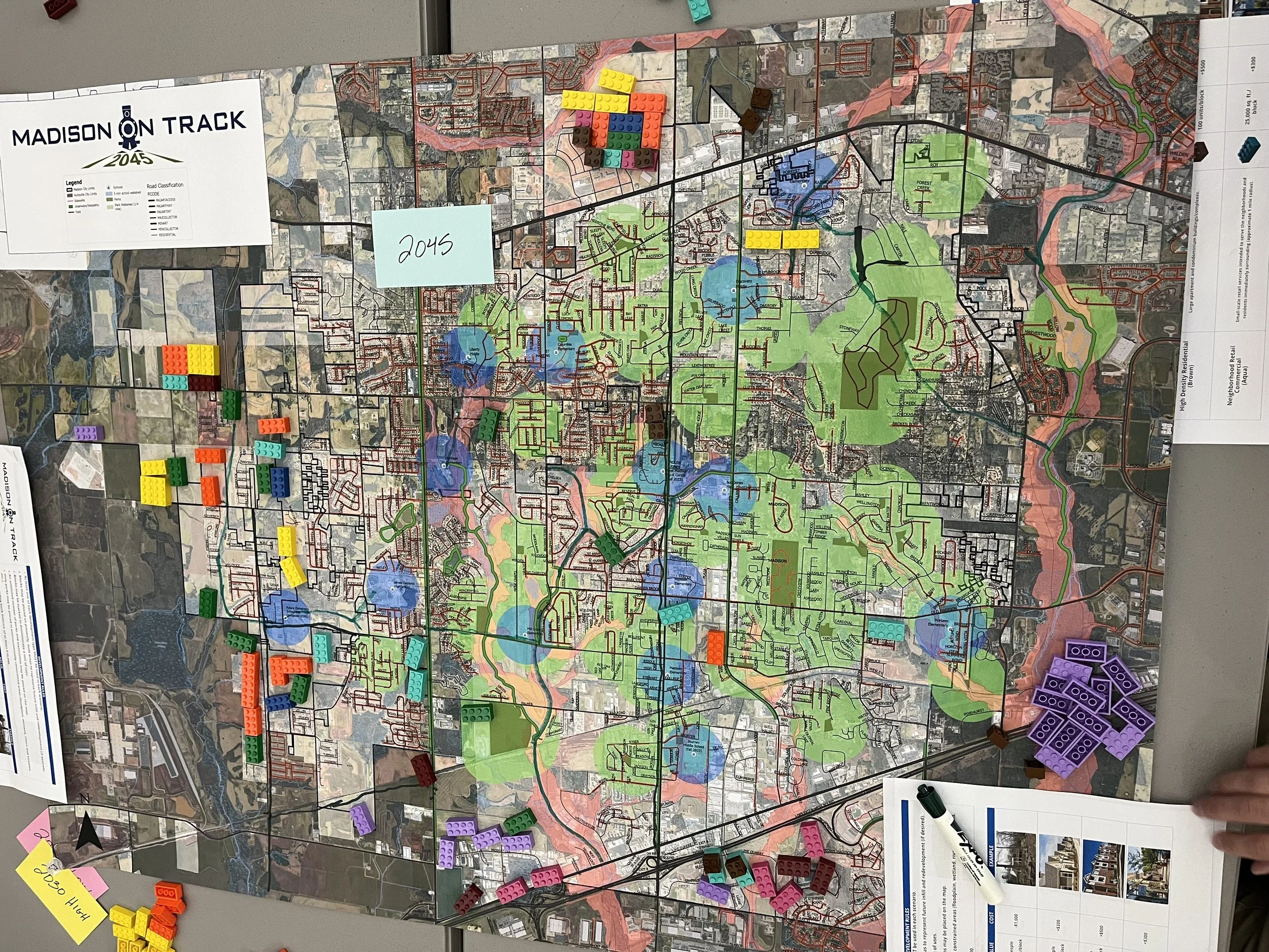 In response to its rapid growth as a suburban community, the City of Madison, Alabama, launched the Madison on Track 2045 comprehensive planning process in early 2022 to proactively guide development over the next two decades. Led by Orion Planning + Design, the effort emphasized place-based, context-sensitive solutions grounded in collaboration, data analysis, and a strong legal framework. The goal was to establish a clear vision to manage growth, enhance quality of life, and preserve Madison’s unique community character. A defining feature of the process was its robust, multi-faceted community engagement strategy, ensuring the plan reflected local priorities and aspirations. This included a diverse citizen Advisory Committee, extensive stakeholder interviews, a citywide survey with nearly 600 responses, and a week-long series of interactive Community Planning Workshops. During these workshops, residents used hands-on tools, including Lego blocks, to visualize and map potential growth scenarios. Engagement was further supported by a dedicated project website that served as a central information and feedback hub.